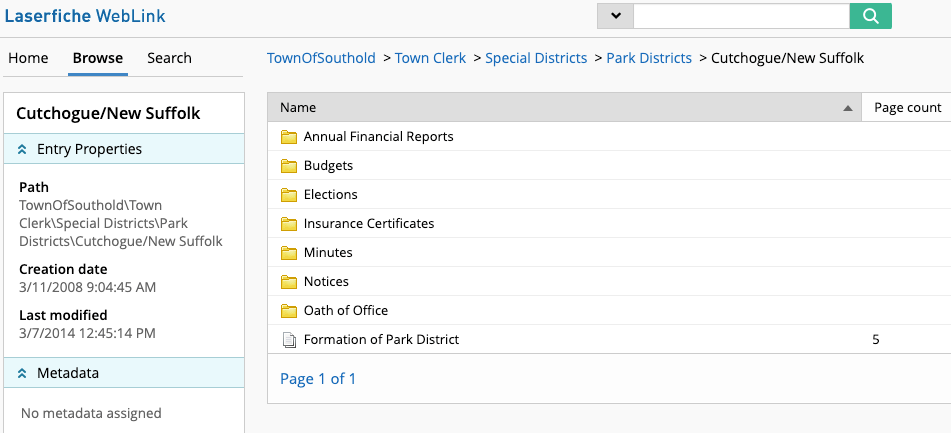 Minutes of meetings are posted in the Laserfiche folder for Cutchogue-New Suffolk Park District provided by the Town of Southold.